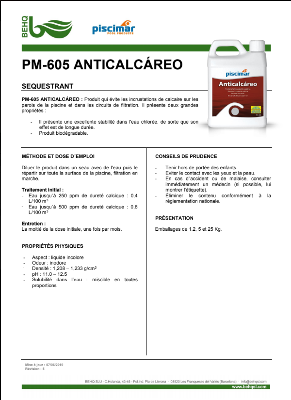 Anti-calcaire de Piscimar efficace et concentré ! Cette solution évite l’incrustation du calcaire, aussi bien sur les parois de la piscines que dans le système de filtration.