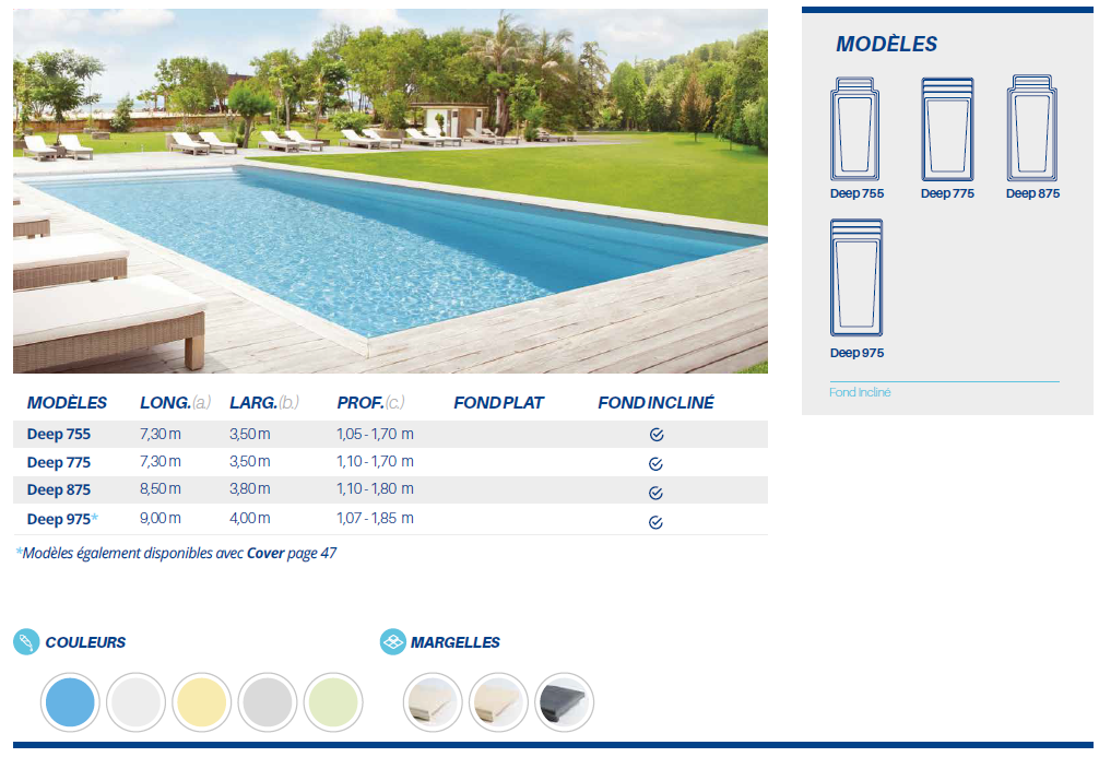 Deep 755 : 7.30m x 3.50m x 1.07m à 1.70m