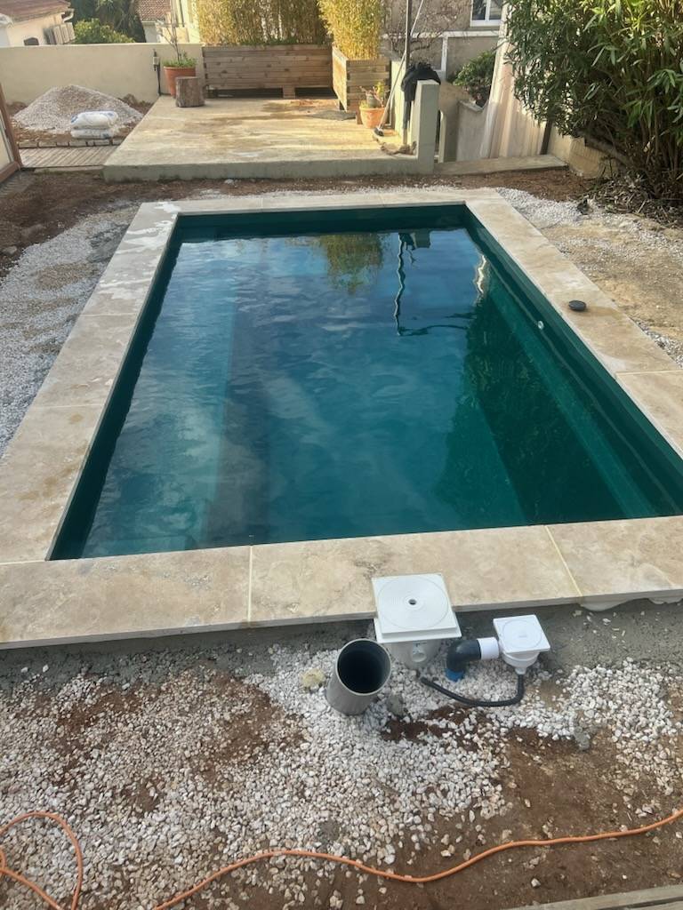 Elle comprend une zone de baignade mais aussi une banquette pouvant accueillir confortablement plus de 6 personnes.
