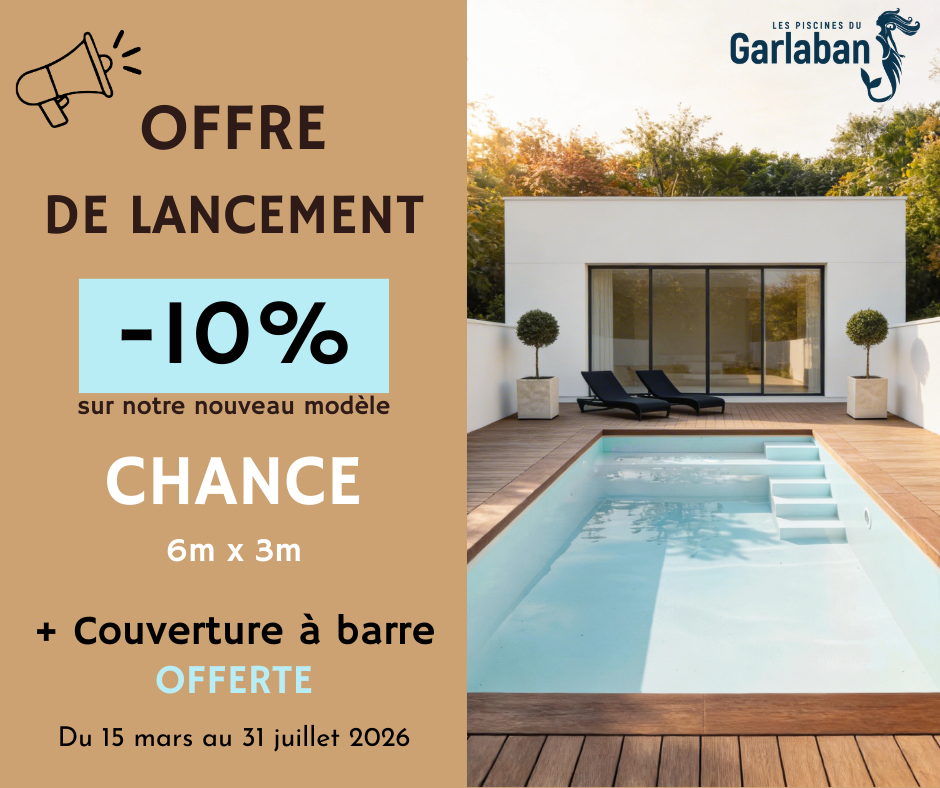 Les Piscines du Garlaban vous présente son nouveau modèle piscine coque Chance du fabricant Mon de Pra, pensée pour offrir un parfait équilibre en design, confort de baignade et optimisation de l'espace!